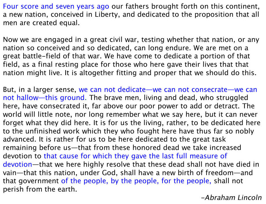 Randomly select 10 words from the Gettysburg Address and calculate the mean number of letters in these 10 words. Submit your answer at https://forms.gle/1T964mErk4gPVyRRA.