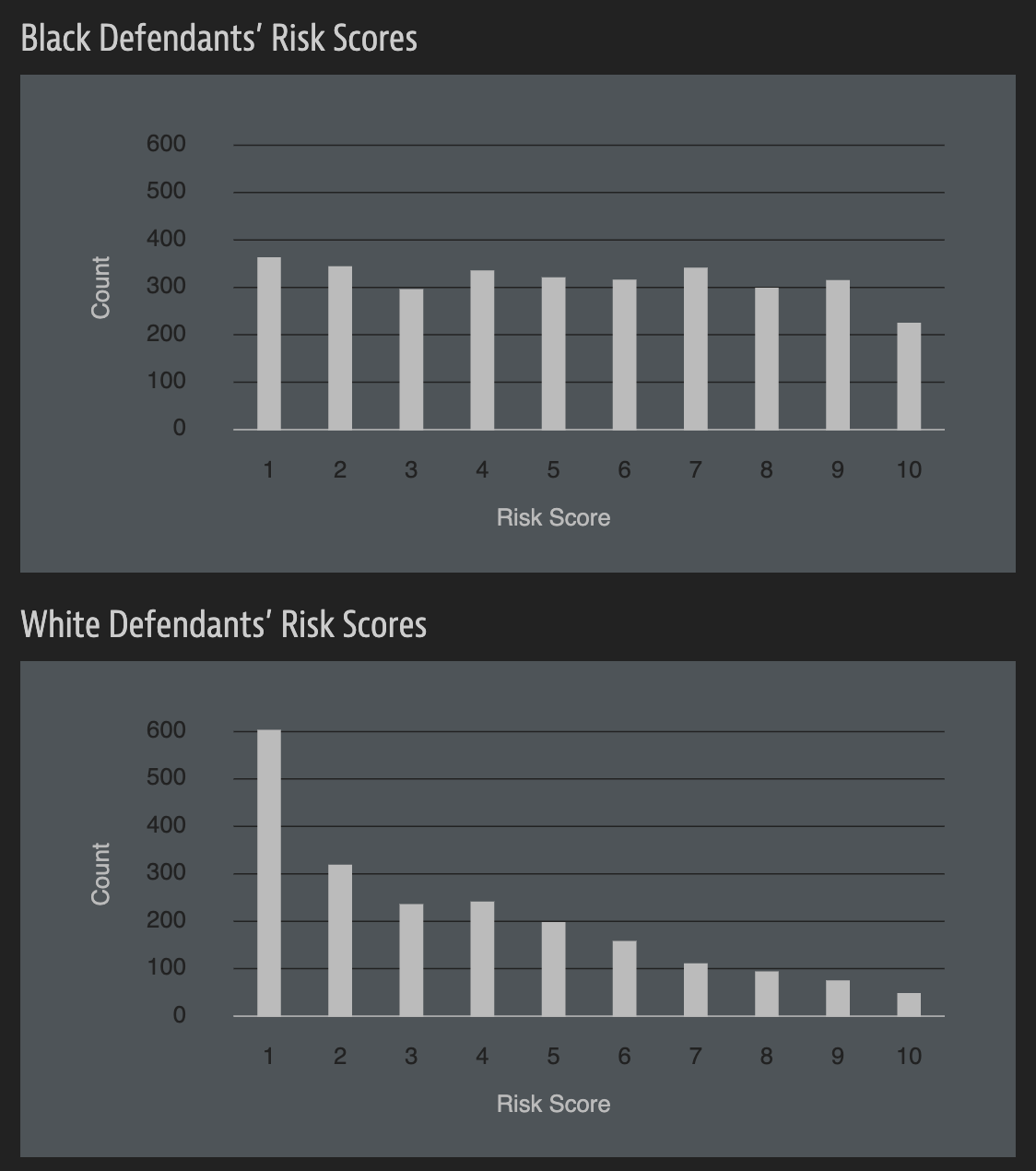 What is common among the defendants who were assigned a high/low risk score for reoffending?
