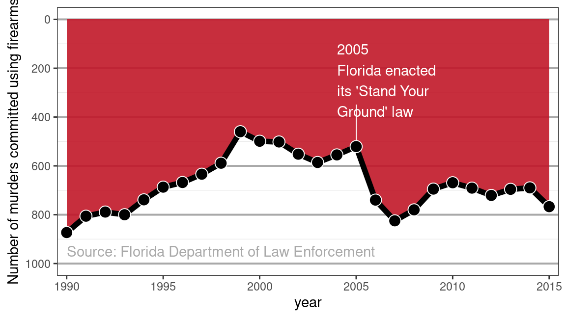 In 2005, the Florida legislature passed the controversial “Stand Your Ground” law that broadened the situations in which citizens can use lethal force to protect themselves against perceived threats. Advocates believed that the new law would ultimately reduce crime; opponents feared an increase in the use of lethal force.